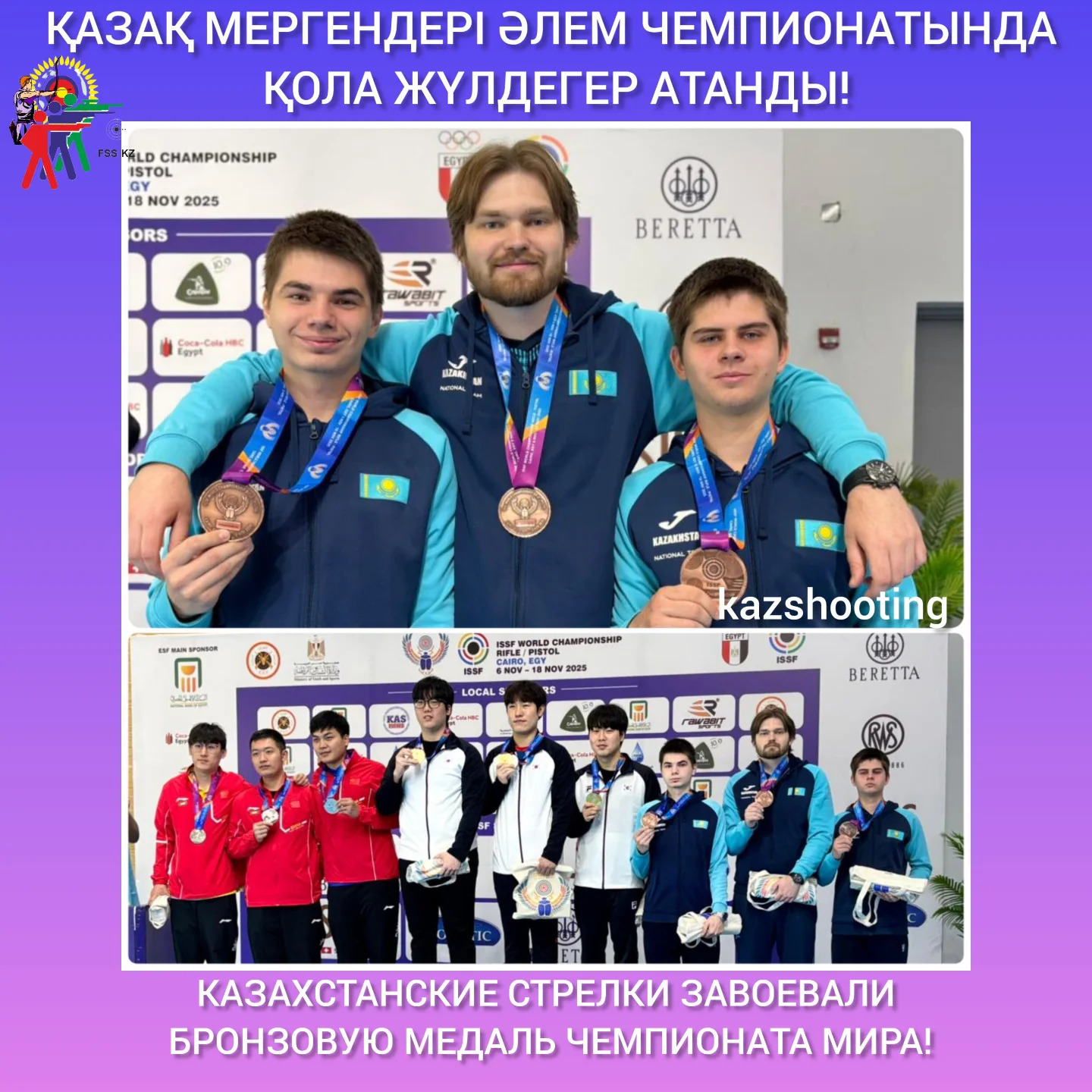 ҚАЗАҚ МЕРГЕНДЕРІ МЫСЫРДА ӨТІП ЖАТҚАН ӘЛЕМ ЧЕМПИОНАТЫНДА ЕКІНШІ ҚОЛА МЕДАЛЬ ЖЕҢІП АЛДЫ! Командалық есепте «25m
