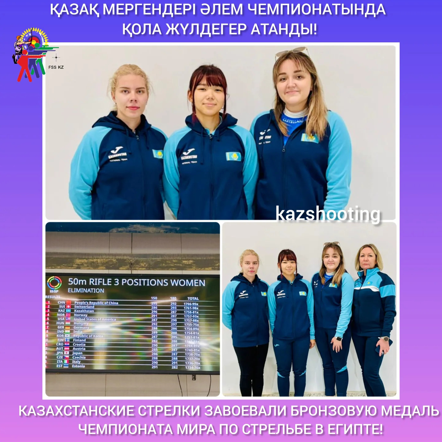 КАЗАХСТАНСКИЕ СТРЕЛКИ ЗАВОЕВАЛИ БРОНЗОВУЮ МЕДАЛЬ ЧЕМПИОНАТА МИРА В ЕГИПТЕ! В командном зачете на дистанции 50метров