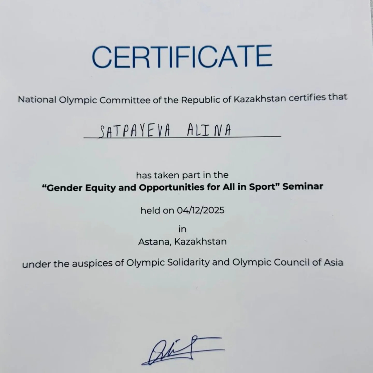 Мероприятие было организовано при поддержке Международного олимпийского комитета, Департамента международного олимпийского сотрудничества, Азиатского олимпийского совета и Регионального офиса ЮНЕСКО в Алматы. Семинар был посвящён вопросам обеспечения равных возможностей в спорте, расширению доступности спортивных ресурсов, продвижению принципов инклюзивности и формированию современной, справедливой спортивной среды.