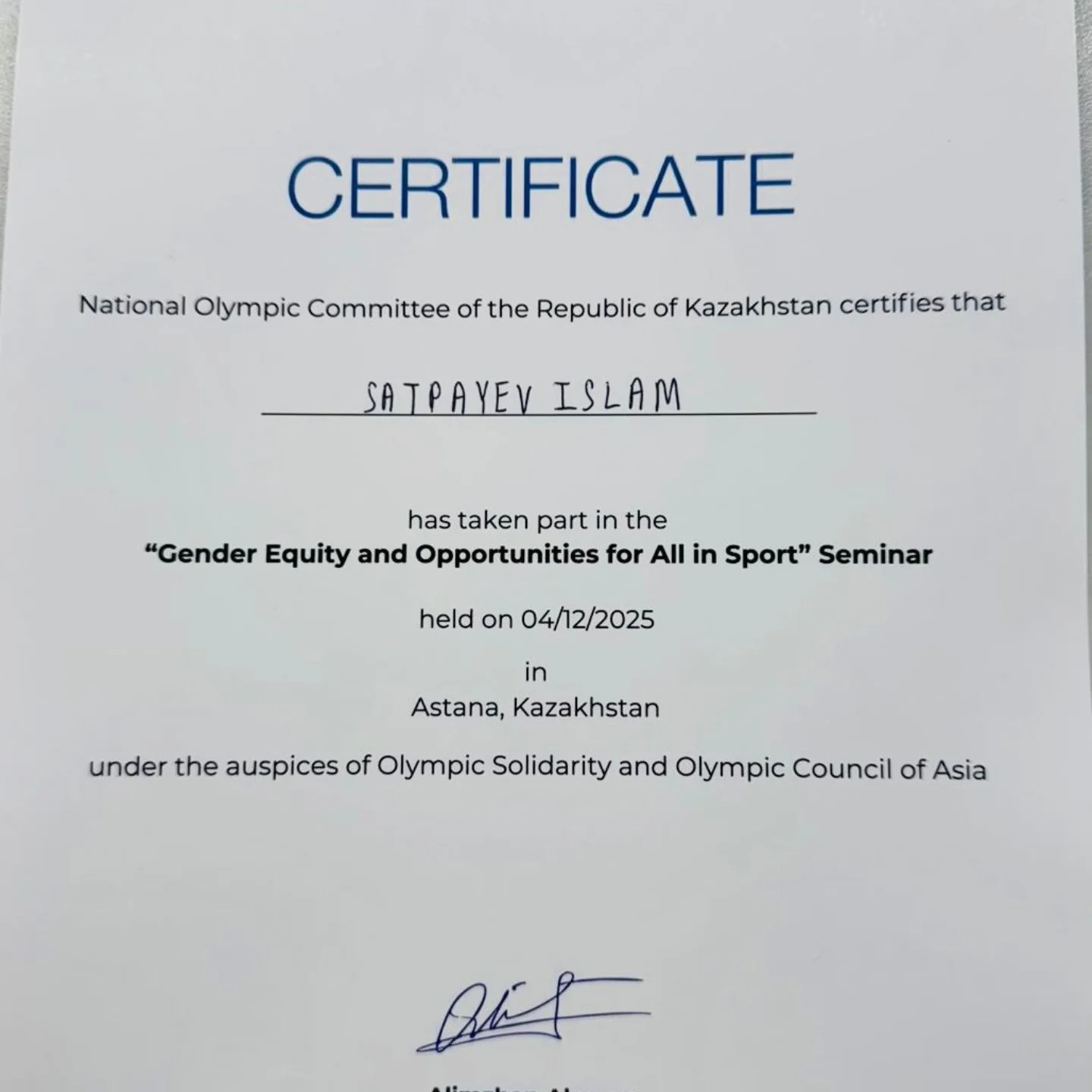• Сатпаев Ислам — Заслуженный мастер спорта Республики Казахстан (ЗМС РК)